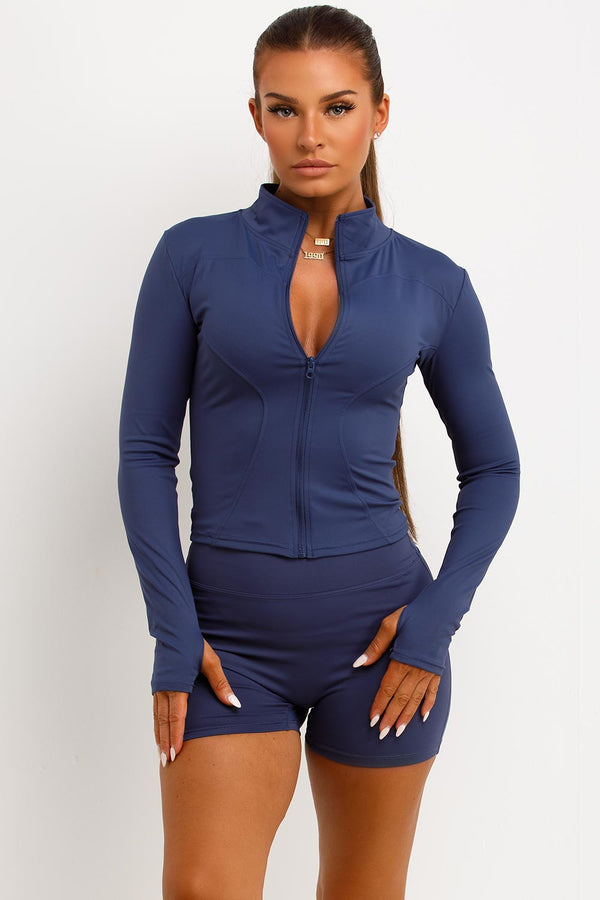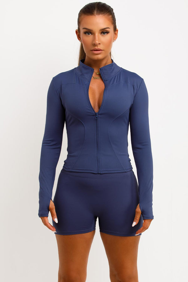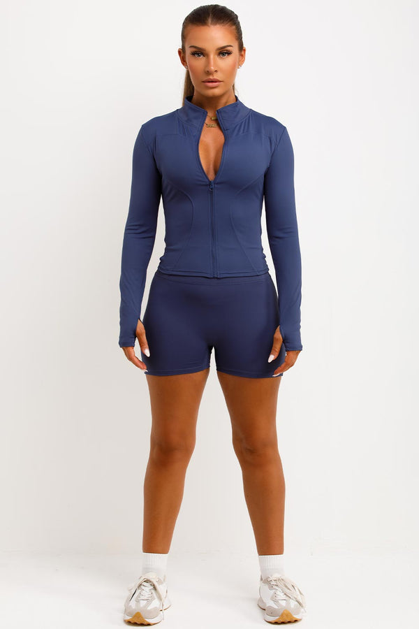 Zip Up Sports Jacket And Gym Shorts Co Ord Set Navy