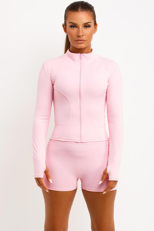 Zip Up Sports Jacket And Gym Shorts Co Ord Set Pink